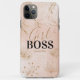 Lass der Welt deine Stärke mit diesem trendigen Girl Boss Handy für mächtige Frauen überall! Mit einem Aquarellpinken-Waschhintergrund, Imitaten goldfarbenes botanisches Blattwerk mit goldenem Staubkalligraphie-Skript und Ihrem Namen.