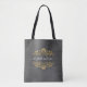 Ein klassisches Metallic-Grau- und Goldmonogramm mit weißer Schrift schmückt diesen Totbeutel. Entworfen für Sie von BlackBerry Boulevard.