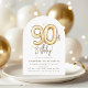 Make your 90th birthday celebration unforgettable with our customizable invitation featuring watercolor gold foil balloon numbers 90 on a timeless white background. Edit it to make it yours and set the tone for a party everyone will remember.