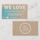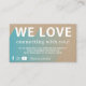 Passen Sie diese trendige Business Marketing Card an. Dies ist ideal für E-Commerce-Unternehmen wie Boutique, Etsy Store oder andere kleine Unternehmen. Es enthält den Satz "WE LIEBE" und hat einen anpassbaren Text, um weitere Details zu erklären. Auf der Rückseite kann Ihr personalisiertes Firmenlogo angezeigt werden. Dieses Produkt zeigt Interesse an der Kontaktaufnahme mit Kunden, indem es die Käufer ermutigt, Ihnen zu kommunizieren und Ihr Unternehmen in sozialen Medien mit den Informationen zu verfolgen, die neben den sozialen Medien Facebook, Instagram und YouTube Icons bereitgestellt werden.