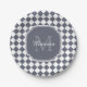 Trendy, grau und weiß, Mit Monogramm Name geprüft Pappteller