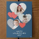 Stilvoll geklapptes Foto-Collage Grußkarte mit sechs überlappenden Herzformen, drei mit personalisierbaren Fotos. Open text header - Passt den Platzhalter an eure Veranstaltung an (z.B. "Happy Valentine's Day Grandpa"). Perfekt für den Valentinstag, den süßesten Tag, den Muttertag, den Vatertag, den Geburtstag oder wann immer du will, deine Liebe, Freude und ein paar einfache Fotos zu teilen. Persönliche Nachricht Stub. Erhältlich in einer kuratierten Auswahl von fett-modernen Hintergrundfarben. Auch als Flachkarte erhältlich.