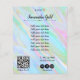 Mit unserem Trendy Hologram Flyer präsentieren wir Ihnen einen idealen Ausstellungsort für Ihre Dienstleistungsliste. Dieser Flyer ist perfekt für Nageltechniker, Schönheitssalons, Hautpflegestudios, Kosmetologen und Schminkkünstler geeignet und bietet raffinierte Golddetails, die eine Touch an Opulenz hinzufügen. Mit einem QR-Code für den bequemen Zugang zu zusätzlichen Informationen, Logos, Social Media Icons , ist es das perfekte Marketing-Tool, um Ihr Know-how in Make-up, Schönheitssalon-Services und Nagelpflege zu fördern. Steigern Sie Ihre Marke mit diesem ausgeklügelten und visuell ansprechenden Flyer, der das Wesen von Luxus und Professionalität erweckt