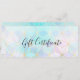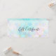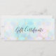 Ein elegantes und trendiges Design aus hellpastellfarbenen geometrischen Würfeln und dreieckigen Formen von Blau, Lavendel und Rosa, umrissen in einem Imitat funkelnd Goldstruktur. Das Design wird auf der Rückseite der Karte wiederholt. Auf der Vorderseite befindet sich ein individualisierbarer kursiver Script-Schriftart für Ihr Geschenkgutachten in schwarz. Auf der Rückseite finden Sie auch diesen Text, sowie einen Platz zum Hinzufügen Ihres Logos, einen Zu- und Aus-Bereich für Ihre Geschenkgutscheine-Empfänger sowie einen Platz zum Ausfüllen des Geldwertes des Zertifikats. Am Ende des Geschenkgutachtens können Sie Ihre zusätzlichen Geschäftsinformationen wie Ihre Website und Adresse ausfüllen. Diese Visitenkarte ist eine sehr elegante und elegante Art, Ihren Kunden eine Geschenkgutscheine-Option mit schlichtem Grau, Pastellfarben und Golddesign anzubieten.