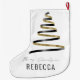 Trendy Künstlerisch Tree Gold Black Name Merry Großer Weihnachtsstrumpf