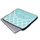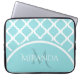 Machen Sie es einzigartig mit diesem modischen großen aqua quatrefoil Muster Allover Print Laptop Ärmel. Sie personalisieren es, indem Sie den eigenen Namen und den mit Monogramm Initialnamen in der bereitgestellten Textvorlage einfügen. Dieses schicke Design in Island Paradise Blue ist sowohl stilvoll als auch modern.