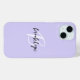Dieses elegante personalisierte Handy verfügt über ein Monogramm und einen Vornamen in modernem Schwarz-Weiß-Script auf einem trendigen Lavendelhintergrund.
