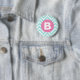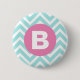Trendy Light Blue Chevron Pink Monogram Button