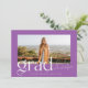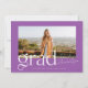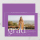 Diese moderne und trendige Ankündigung des Abschlusses besticht durch eine lila-weiße Farbpalette und ein großes Foto Ihres Absolventen. Ein kühner und stilvoller "Grad" schmückt die Vorderseite. Auf der Rückseite der Karte befindet sich ein einfacher Typ, mit dem Sie mehr über Ihren Absolventen und deren Plan für die Zukunft erfahren können. Oder man kann es zu einer Abschlussfeier-Einladung wechseln. Andere Versionen dieses Designs finden Sie in meinem Zazzle-Shop.
