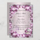 Hübsche violette Blumen auf lila Hintergrund. Überraschen Sie Ihre Freunde und Familie mit einer charmanten Einladung zu einer Verlobung, die klassischen Stil mit frischen, modernen Details verbindet, wenn Sie diese elegante Einladung senden. Diese schöne Einladungskarte ist personalisiert. Personalisieren Sie die Karte, indem Sie den Text in den vorn und hinten angegebenen Feldern ändern. Sie können Stil, Größe und Farbe des Schriftartes sowie Papiertyp und Stil ändern.