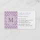 Trendy Lila Zickzack Zigzag Monogram Beautician Visitenkarte
