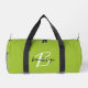 Diese personalisierte Duffeltasche ist mit einem Monogramm und einem Vornamen in modernem Schwarz-Weiß-Skript auf einem angesagten limiengrünen Hintergrund ausgestattet.