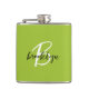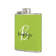 Trendy Lime Green Schwarz-weiß Script Monogram Flachmann