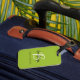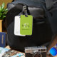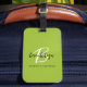 Dieses elegante personalisierte Gepäckanhänger mit einem Monogramm und Vornamen in modernem Schwarz-Weiß-Script auf einem trendigen limig grünen Hintergrund, mit dem vollen Namen in schwarzem Sans Serif Schriftart unten.