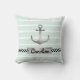 Trendy Mint Green Stripes und Aquarellanschor Kissen