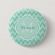 Trendy Mint Green Zickzack Zigzag Name und Monogra Button