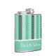 Trendy Minze Grüne Zickzack Streifen mit Namen Flachmann