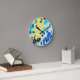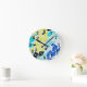 Spaß und lebhafter Leopardendruck. Die Farbe ist hellgrün, blau, schwarz und türkis. Trendy Glam Vibranu Aqua Limon Leopard Print Round Clock