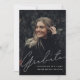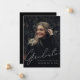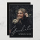 Dieses moderne Simple Script Two Foto Abschluss Announcement verfügt über ein vollformatiges Foto auf der Vorderseite mit weißem Texteüberlagerungen und ein Foto auf der Rückseite mit optionalen Details.