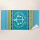 Trendy Monogram Anchor Laurel Wreath Stripes Aqua Strandtuch