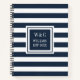 Trendy Monogram Navy Blue Stripe Familienname Notizbuch