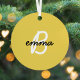Trendy, stilvoller individuelle Name und erstklassige Weihnachtsbaumschmuck in modernem minimalistischem Schriftzeichen in Schwarz und Weiß auf schlichter, fröhlicher Senfgelb-Hintergrundmusik. Der Name und die Initialname können leicht mit Ihrem eigenen Namen oder dem Namen eines geliebten Menschen personalisiert werden, um ein perfektes Geschenk für einen Freund oder Liebsten zu machen!