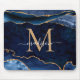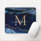 Trendy Navy Blue Gold Sparkle Agate Geode Monogram Mousepad