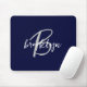Trendy Navy Blue Gray White Script Monogram Mousepad