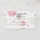 Eine trendige und niedliche Visitenkartenvorlage mit ggirly gingham polka Punkten und Retro daisy Blume auf der oberen und grünen Gingham auf der unteren. Die Farben sind rosa, grün und braun.