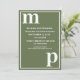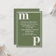 Einfaches minimalistisches Typografie-Design in einer trendigen, niedlichen Textpaarung von Schriftart in fett gedruckter Kleinschreibung für die Text-Vorlagen für Monogramm-Buchstaben und Vorlagen für den Schriftart in Großbuchstaben für die Details, die Sie leicht in der beliebten Hochzeitsfarbe von Olivgrün und Weiß personalisieren können. Ändern Sie einfach die Buchstaben und Details auf der Produktseite nach rechts. Alle Elemente sind vollständig anpassbar.