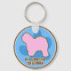 Der einfache, saubere und coole Old English Sheepdog Schlüsselanhänger hat eine rosa Rasse Silhouette vor einem blauen Hintergrund mit einem Pfotenprint. Schokoladenbraun und weiß. Funky, trendy und coole Geschenke für die Liebhaber von Schafen!