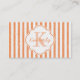 Mit diesen trendigen, hellen, orangefarbenen, bedrückten Stripteppichen Visitenkarten verleihen Sie Ihrem Wunschberuf Mode und Flair. Dieses niedliche und stilvolle pastellfarbene Orangendesign wird durch den Zusatz des Namens und der Monogramm-Initiale der modischen jungen Geschäftsfrau persönlich gestaltet.