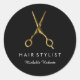 Trendy Personalisierte Goldschere Friseur Schwarzer Klassiker Rundsticker