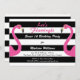 Fun rosa Flamingos und das Sprichwort, "Let's Flamingle" Akzent dieses trendige Sweet 16 Birthday Party Einladung auf einem gestreiften schwarz-weißen Hintergrund, perfekt für einen Sommer GRILLEN, luau, Ansammlung am Pool, oder Flamingo-Abend. Wenn Sie Hilfe bei der Personalisierung dieser Einladung benötigen oder weitere Koordinierungsaufgaben benötigen, kontaktieren Sie uns bitte unter prettyfancyinvites@gmail.com mit Ihrer Anfrage.