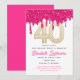 Trendy Pink Glitzer Tropfen 40. Geburtstag Einladu Einladung