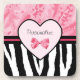 Trendy Pink und Black Zebra Muster Bow und Name Getränkeuntersetzer