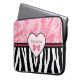 Trendy Pink und Black Zebra Muster Bow und Name Laptopschutzhülle
