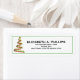 Dieses grüne gerahmte Label zeichnet sich durch einen farbenfrohen abstrakten Weihnachtsbaum aus, der in Rot, Grün und Gold gehalten ist. Es hat ein Imitat Gold Glitzer Stern Oberteil. Die Informationen zur Adressenvorlage sind auf der rechten Seite des Etiketts in schwarz Set. Füllen Sie die Textfelder der Vorlage unter Personalisieren aus.