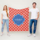 Trendy Red Quatrefolie Blue Monogram und Name Fleecedecke