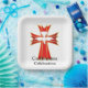 Trendy Red Yellow Fire and Dove Cross Bestätigung Pappteller