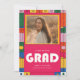 Make a bold statement with this photo graduation invitation featuring a vibrant retro graduation border and bright modern simple minimalist layout. Perfect for any high school college university graduate, it highlights your favorite grad graduate portrait above a clean graduation invitation layout for party details. Ideal for a class of 2026 grad party, this design feels casual trendy unique and full of personality. Personalize the name and event information to create unforgettable graduation party invites. Personalize yours today.