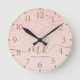 Trendy Rose Gold Glitzer Extravagante Initialen un Runde Wanduhr