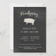 Dieses stilvolle und schlichte Friendsgiving lädt zu einem großen Erntedank-Dinner-Fest mit Freunden ein. Freuen Sie sich auf einen schwarzen Chalkboard-Look, eine Silhouette im Bauernstil und eine trendige rustikale Schrift. Die Rückseite der Einladung hat einen verwitterten, weißen Holzausdruck.