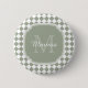 Trendy Sage Green Checked Mit Monogramm Name Button