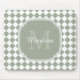 Fügen Sie eine Touch von Klasse mit diesem trendigen Salbei grün und weiß geometrischen Diamant kontrollierte Fliesenmuster monogramm Mousepad. Personalisieren Sie dieses stilvolle Design, indem Sie Ihren Namen und mit Monogramm Initialen hinzufügen.