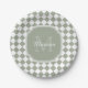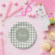 Trendy Sage Green Checked Mit Monogramm Name Pappteller