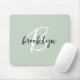 Trendy Sage Green Schwarz-weiß Script Monogram Mousepad