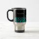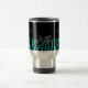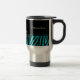Eine niedliche und trendy Zebradruck-Reise-Tasse mit modernen schwarzen und aquamarinen Zebrastreifen und mit einem girly schwarzen Druckband verschönert. Personifizieren Sie, indem Sie Ihren Namen dem diesem schicken Entwurf der Schwarz- und Türkisfrauen hinzufügen. Vervollkommnen Sie für den stilvollen Fashionista in jedem jugendlich Mädchen!