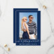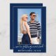 Modern Trendy Calligraphy Script Couple Foto Wir werden verheiratet Save the Date Verlobung Announcement Card - Navy Blue