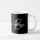 Diese elegante personalisierte Kaffee-Tasse zeichnet sich durch ein Monogramm und einen Vornamen in modernem silbergrauem und weißem Schrift auf schwarzem Hintergrund aus.